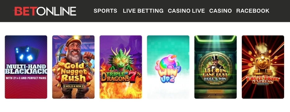 Offers a plethora of online casino games, including slot games, table games with different variants of blackjack, poker, roulette, and baccarat, live games, and sports betting