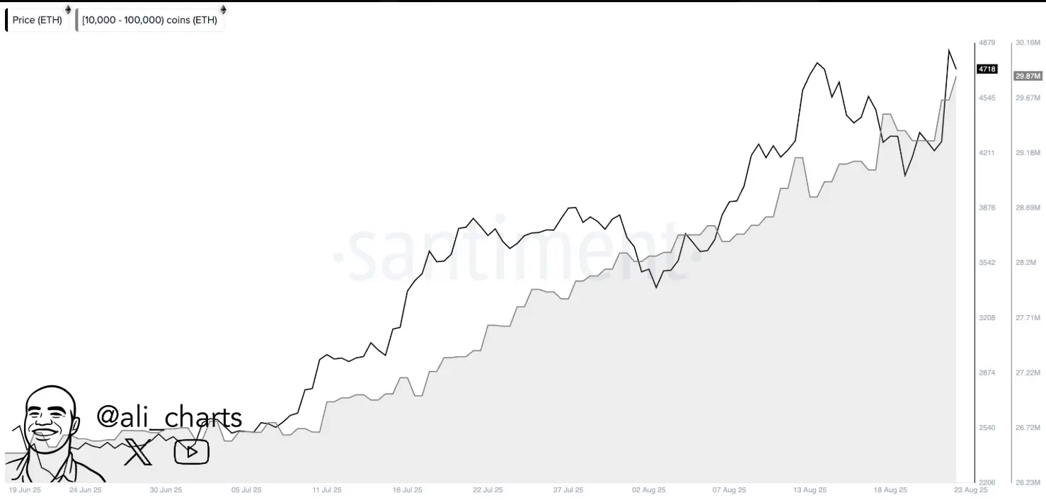 Ali Martinez further highlighted this trend in a recent tweet, revealing that nearly 500,000 ETH were accumulated by whales in just 48 hours. Such massive accumulation within a short span not only signals strong conviction among large investors but also reduces available supply, potentially fueling ETH’s bullish momentum.