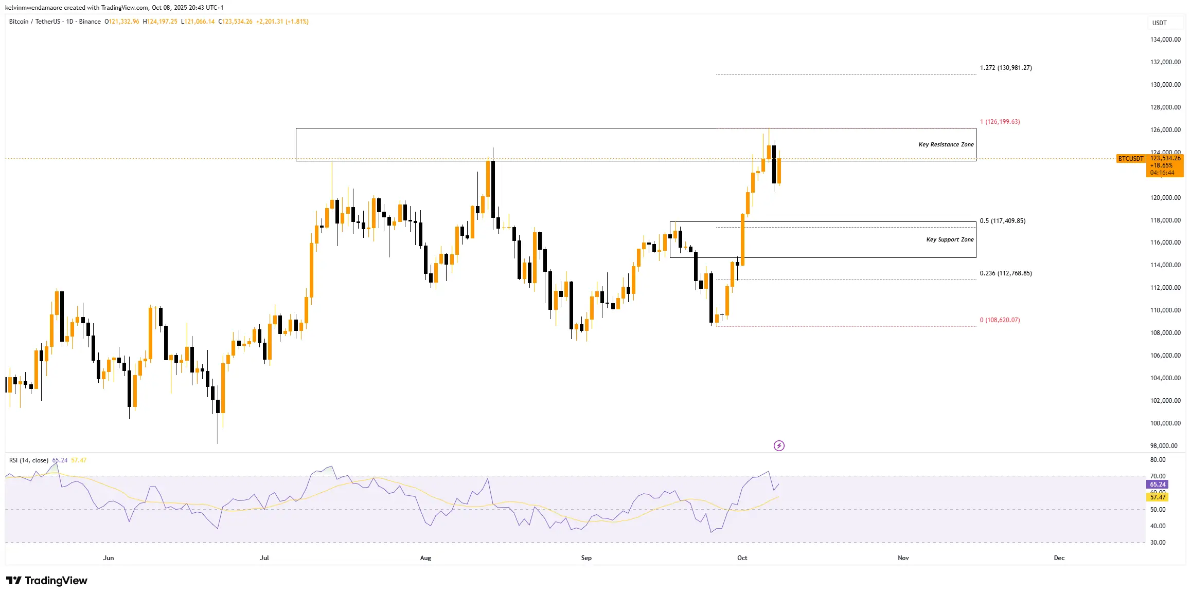 BTC Holds Steady as Bulls Test $126K Resistance Zone