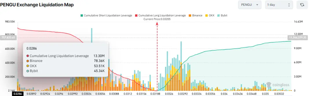 PENGU Total Liquidation Chart (Source: CoinGlass)