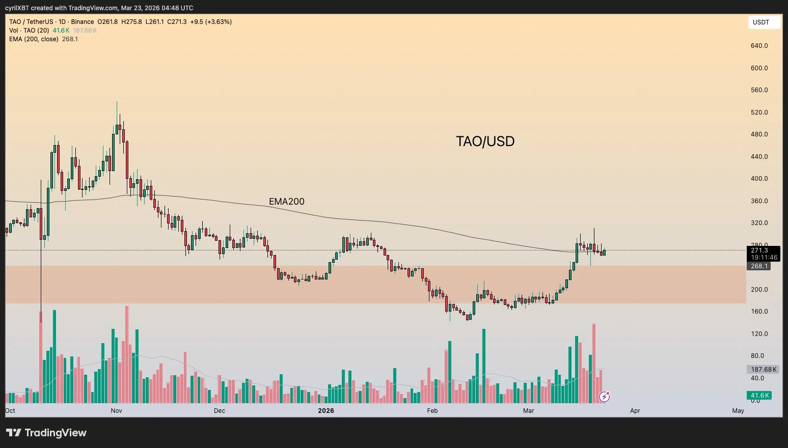 - The TAO crypto is currently trading at above $280, marking a significant uptick.