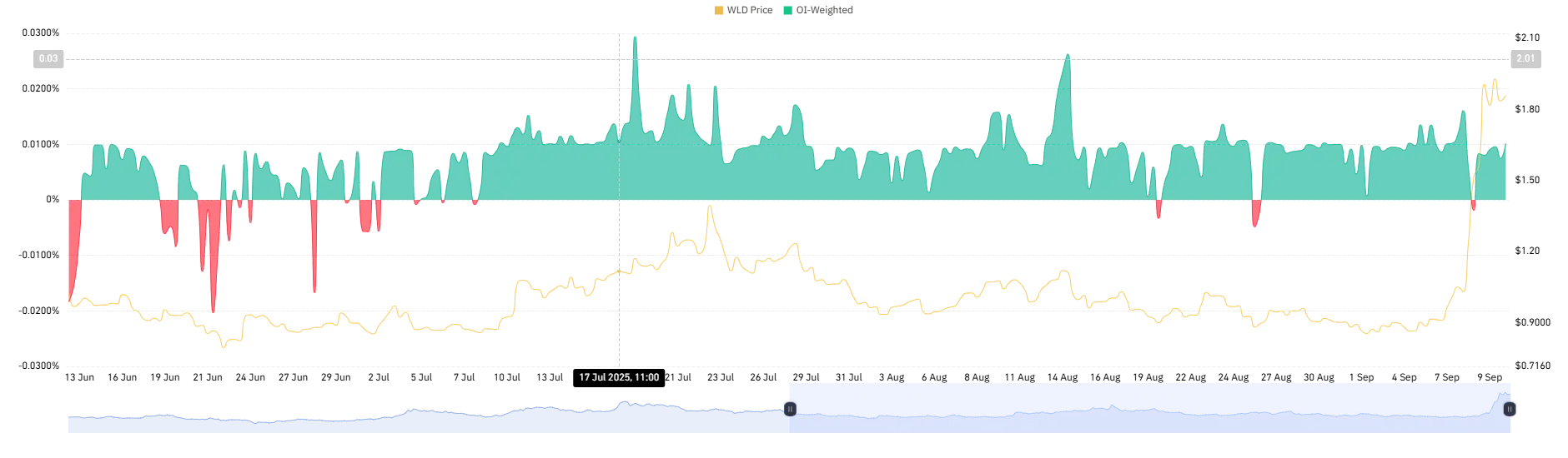 WLD OI-Weighted Funding Rate (Source: CoinGlass)